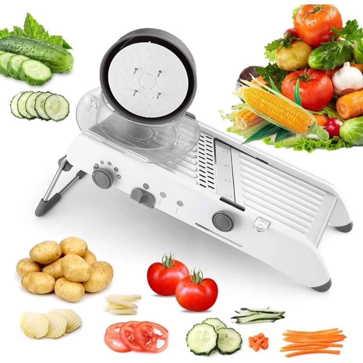 O Fatiador Cortador Mandoline é uma ferramenta essencial na sua cozinha, com um sistema de corte integrado e sem peças soltas, proporcionando segurança e facilidade no seu uso.